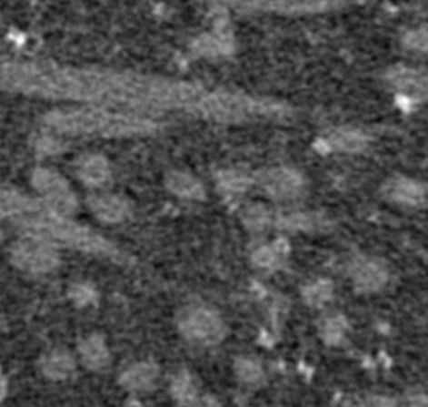 弊社は、X線画像の特性に合わせた最先端の画像処理技術を開発し、事前に撮影画像の欠陥画素マップを検出すると同時に検出器素子感度のばらつきを推定し、その情報を再構成に取り組むことによって、より有効にリングアーチファクトを軽減することができます。